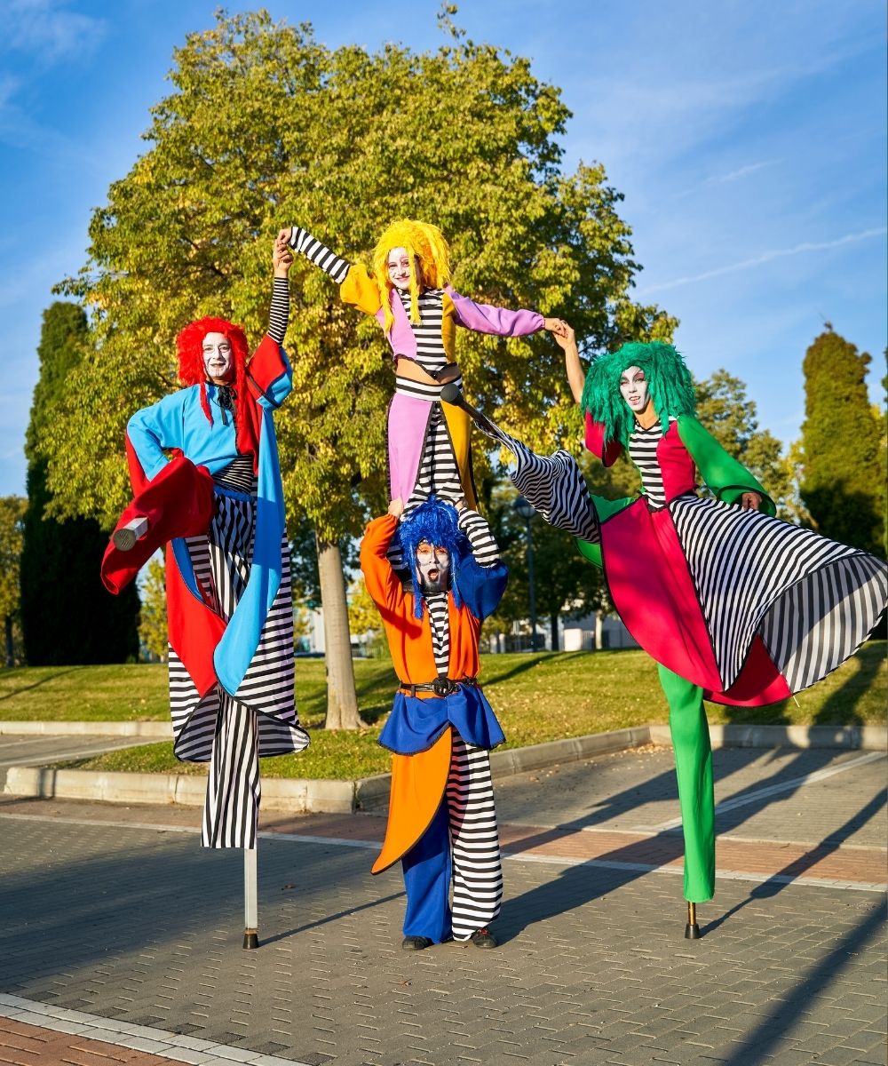 Our stilt walkers are highly trained performers with experience entertaining crowds of all sizes. Each performer combines balance, movement, and character work to create a safe and impressive experience. From elegant strolling to playful interaction, our stilt walkers know how to captivate attention from above.
